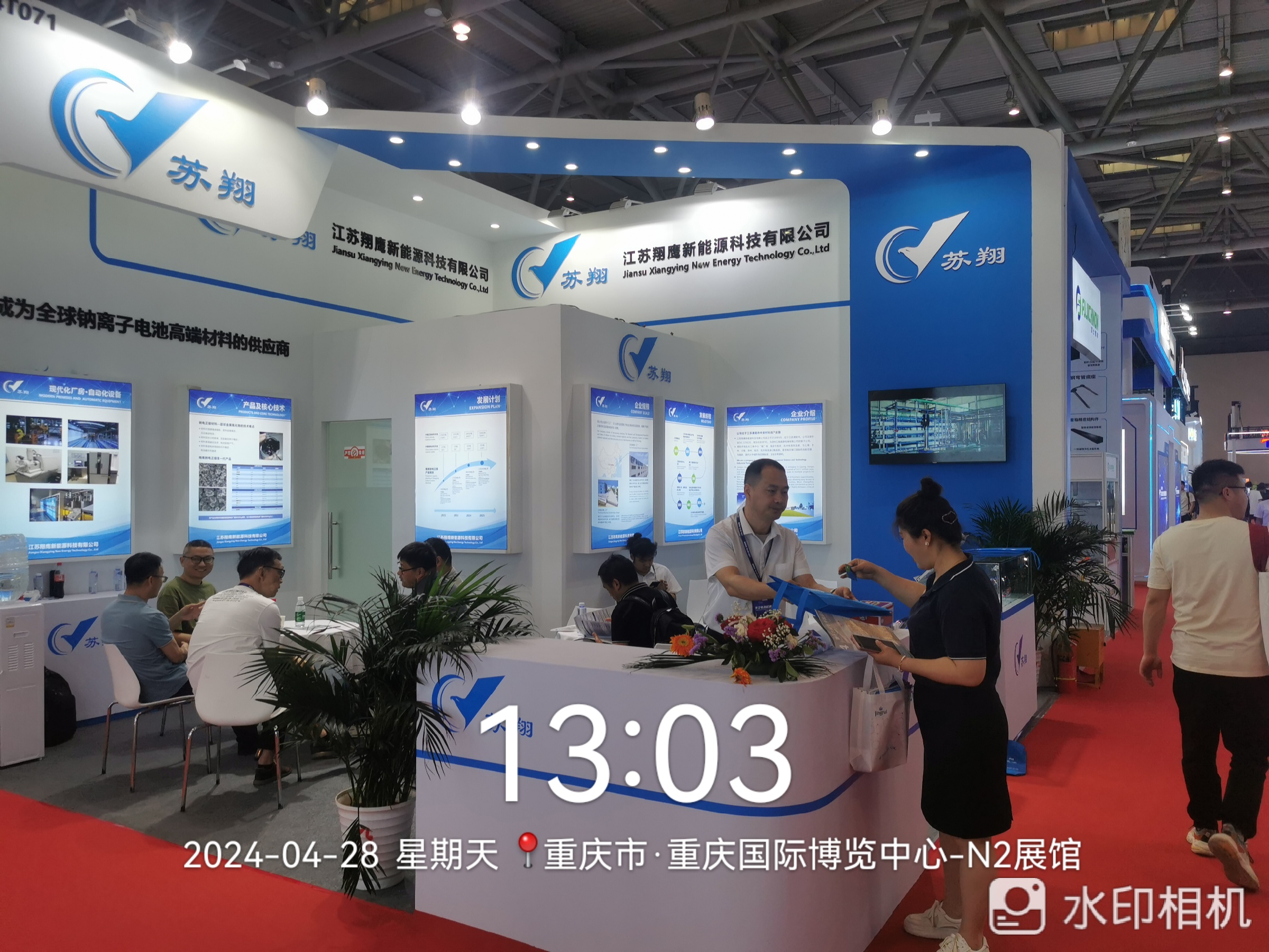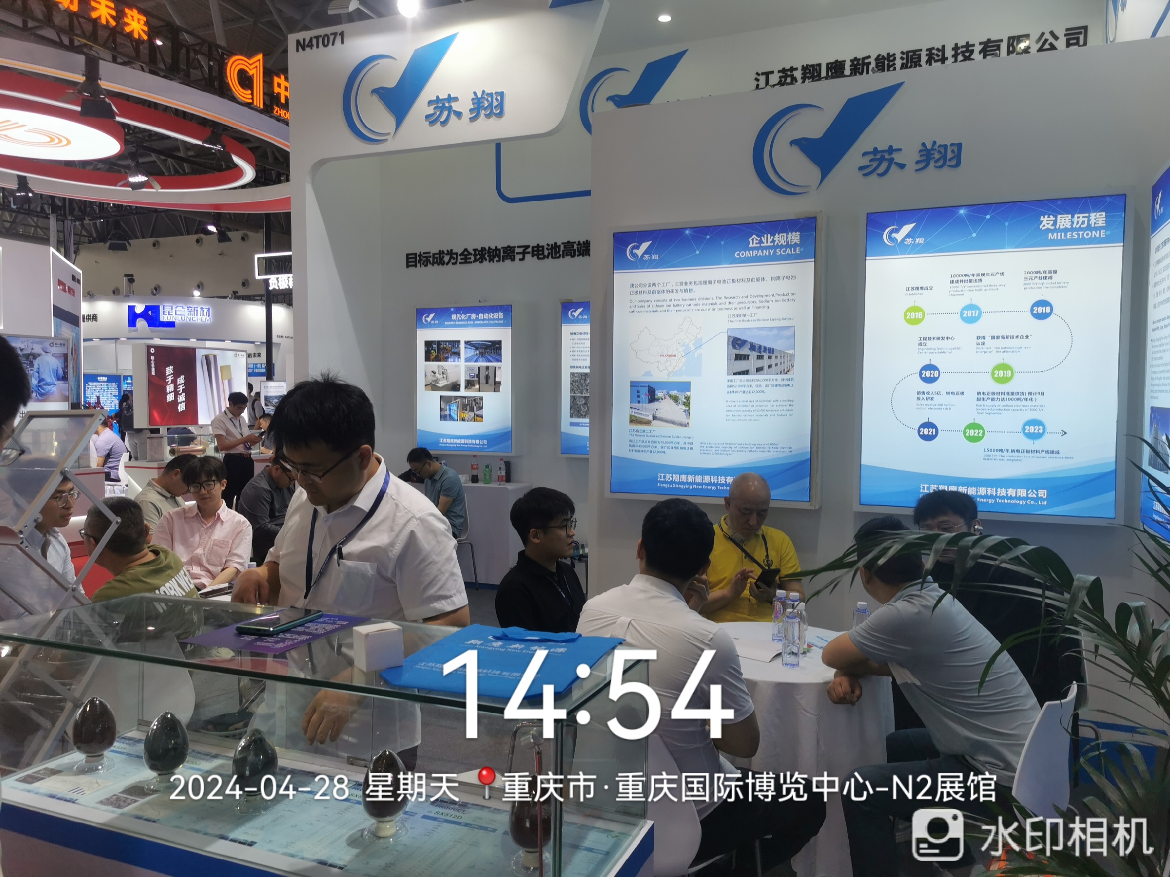 展會期間,江蘇翔鷹所展示的鈉電正極材料、鋰電正極材料,吸引了來自全球各地的行業(yè)專家和觀展人員的駐足咨詢,其中最受矚目的是XN33S鈉電正極材料和他的第二代產(chǎn)品X30G,前來造訪的電池廠家都對這兩款產(chǎn)品表現(xiàn)了濃厚的興趣,徐總與研發(fā)、銷售團(tuán)隊也熱情地向他們介紹了我們的產(chǎn)品性能和未來的研發(fā)方向,許多電池廠家在交流過程中也表達(dá)了與我們進(jìn)一步合作的意向,共同對鈉離子電池行業(yè)進(jìn)行了美好的展望。同時也因我們優(yōu)異的產(chǎn)品質(zhì)量和上升發(fā)展趨勢,讓眾多設(shè)備廠家前來與我們尋求合作。隨著鈉電池行業(yè)快速發(fā)展,江蘇翔鷹迎來了良好的發(fā)展機(jī)遇,我們也將繼續(xù)提高產(chǎn)品性能質(zhì)量,為更多的適用場景進(jìn)行專項研發(fā),為實現(xiàn)國家“雙碳”目標(biāo)而砥礪前行。